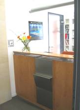 für Sie folgende Besonderheiten bereit ► Ebenerdiger Praxiszugang ► Behindertenfreundliches Patienten WC ► Breite Türen ► Helle und freundliche Räume ► Großformatige Raumbeschriftung ► Wechselnde Kunstausstellungen ► Kinder Mal- und Spielecke im Wartezimmer ► Wartezimmer-Radio ► Sanfte Klimatisierung ► Fehlender "Zahnarztgeruch" ► Pollen- und Insektenfreie Praxis ► Geschlossene Fenster durch Klimatisierung |
